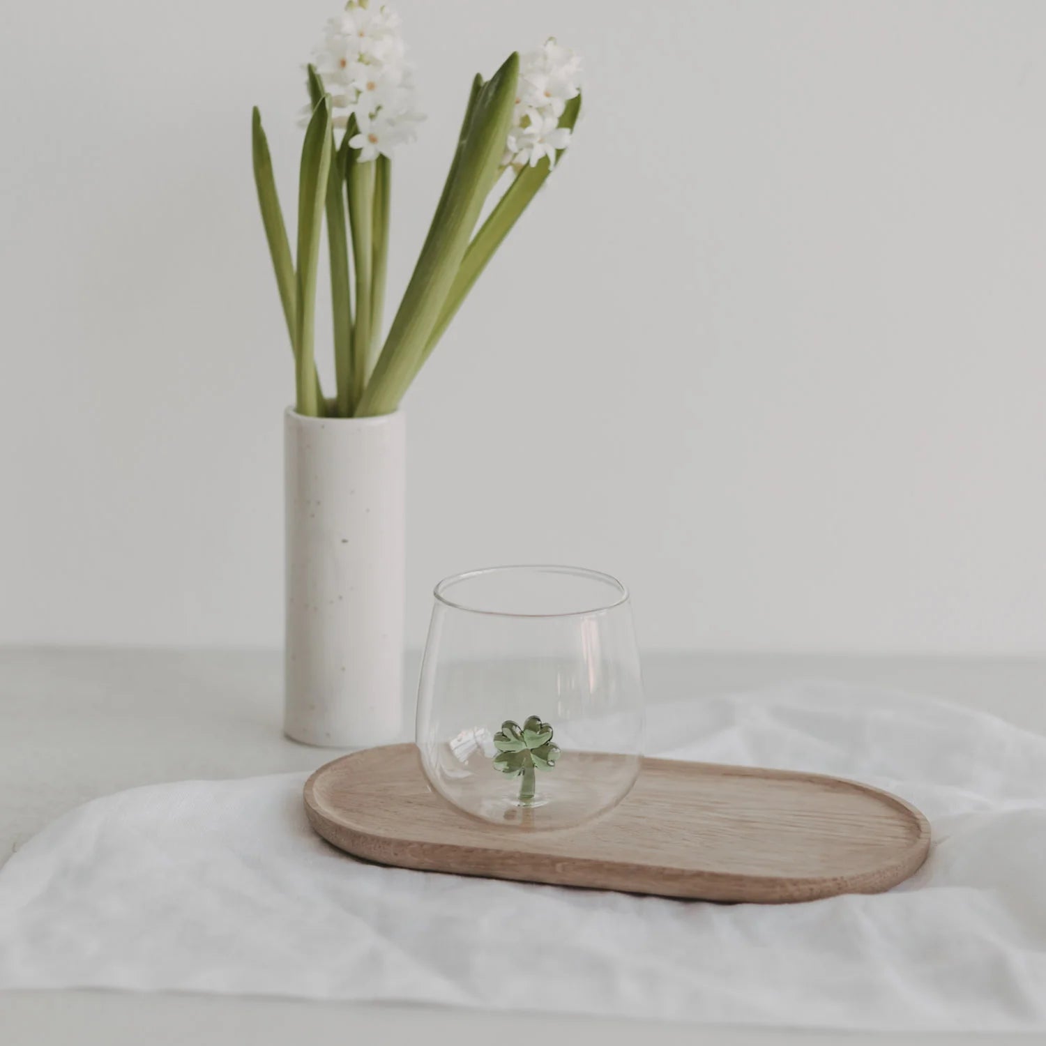 Breng een vleugje Nordic elegantie in je interieur met dit unieke design drinkglas van HomeLush. Het opvallende 3D-klavertje dat zweeft als een kunstwerk in het centrum van het kristalheldere glas, wat zorgt voor een betoverende blikvanger op je eettafel.